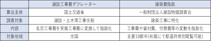 今回は、建築費の動向を把握できる「建設工事費デフレーター」と「建築費指数」について解説しました。特徴や性質が異なったふたつのデータを上手に活用し、また他の様々なデータと組み合わせることで、より適切な投資判断に繋げることができるでしょう。