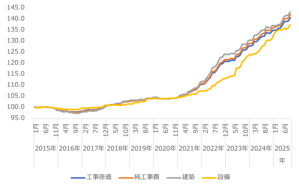 (一般財団法人建設物価調査会「建設物価 建築費指数®」より作成)